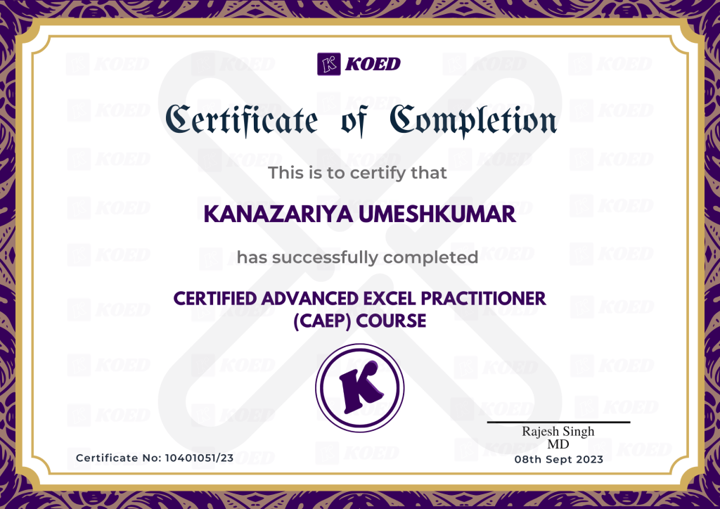 Enrolling in Koed Learning has been a game-changer for my professional development. Their comprehensive courses in data analysis, visualization, deep learning, and advanced Python tools offer flexibility, real-time doubt-solving, and lifetime access. It's the perfect solution for a busy professional like me, and I highly recommend it to anyone looking to upgrade their skills.